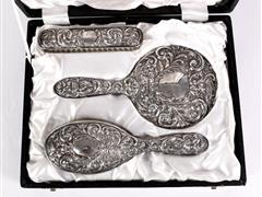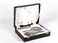 Lot 77 - GÜMÜŞ AYNA, FIRÇA VE TARAK SETİ