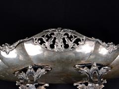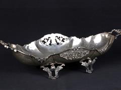 FRANSIZ. 900 AYAR GÜMÜŞ DAMGALI. OVAL FORMLU. ÇİFT TUTAMAKLI. KABARTMA İŞÇİLİKLİ. 39X19 CM. TOPLAM AĞIRLIK 660 GR.