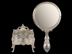 Lot 306 - GÜMÜŞ KAPLAMA MÜCEVHER KUTUSU VE EL AYNASI