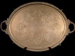 Lot 96 - GÜMÜŞ KAPLAMA TEPSİ