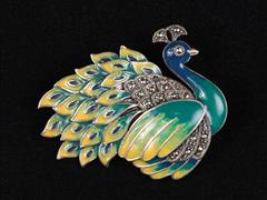 925 AYAR GÜMÜŞ DAMGALI. TAVUSKUŞU FORMLU. MİNE İŞÇİLİKLİ.5X4 CM.TOPLAM AĞIRLIK 15 GR.