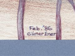 AĞAÇLAR. KAĞIT ÜZERİ KARIŞIK TEKNİK. İMZALI. 1986 T. 19X29,5 CM.