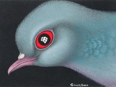 GÜVERCİN. KARTON ÜZERİ KARIŞIK TEKNİK. İMZALI. 10X14 CM.