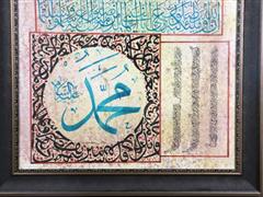 ŞEMAİL'ÜN NEBİ VE AHZAB SURESİNİN 36. AYETİ YAZILI. 98X67 CM.