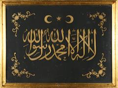 KELİME-İ TEVHİD. AHŞAP KESME İŞÇİLİKLİ. 48X64 CM.