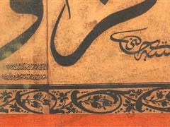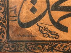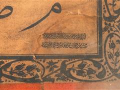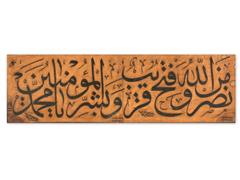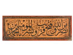 CELİ SÜLÜS HATLA SAFF SURESİ. 13. AYET YAZILI. HÜSNİ KETEBELİ. 1311 T. 31X81 CM.