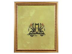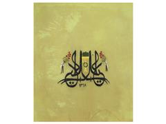 MÜSENNA YAZI İLE YA ALİ YAZILI. ZÜLFİKAR MOTİFLİ. HİCRİ 1318. 24X33 CM.