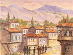 KÖY EVLERİ. TUAL ÜZERİ YAĞLIBOYA. İMZALI. 48X 56 CM.