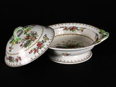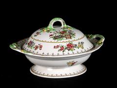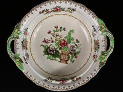 İNGİLİZ. COPELAND PEPLOW İMALAT DAMGALI. ÇİFT TUTAMAKLI VE KAPAKLI. TÜM GÖVDE RENKLİ ÇİÇEKLERLE EL DEKORLU. H 15 CM. ÇAP 28 CM.