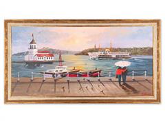 KIZ KULESİ. TUAL ÜZERİ YAĞLIBOYA. İMZALI. 60X120 CM.