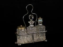 İNGİLİZ. GÜMÜŞ KAPLAMA STAND İÇERİSİNDE. KRİSTAL BAHARATLIK. H 9,5 - 16 CM.
