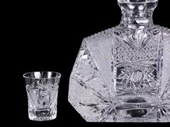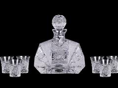 FRANSIZ, KESME KRİSTAL KARAF VE 6 ADET KADEH. KARAF H 20 CM. KADEH 5,5 CM.