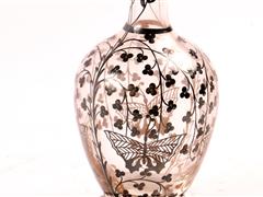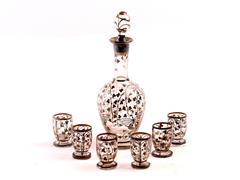 TÜM GÖVDE ÜZERİ GÜMÜŞ SIVAMA KELEBEK DAL VE ÇİÇEK MOTİFLERİYLE DEKORLU. KARAF H 23 CM. KADEH H 5 CM.