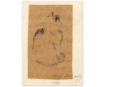 KEDİ. KAĞIT ÜZERİ ÇİNİ MÜREKKEBİ. İMZALI. 1986 T. 11,5X6 CM