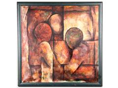 KOMPOZİSYON. TUAL ÜZERİ YAĞLIBOYA. İMZALI. 2003 T. 100X100 CM.