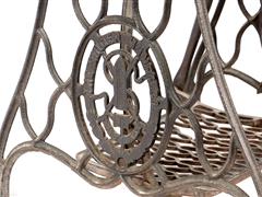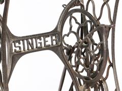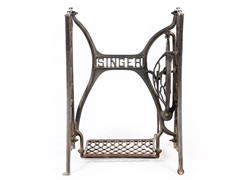 SİNGER DİKİŞ MAKİNESİ AYAĞINDAN MAMÜL. DİKDÖRTGEN CAM TABLALI. CAM TABLA 112X40 CM. H 72 CM.