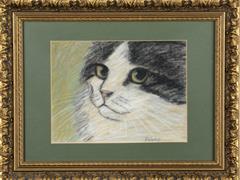 KEDİ. BEZ ÜZERİ PASTEL BOYA. İMZALI. 1987 T. 17X22 CM.