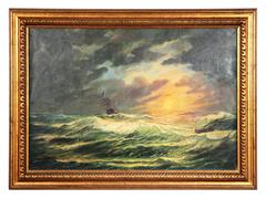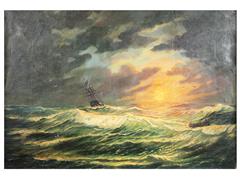 DENİZDE FIRTINA.TUAL ÜZERİ YAĞLIBOYA.İMZALI. 55X80 CM.