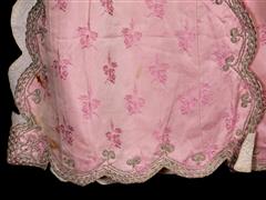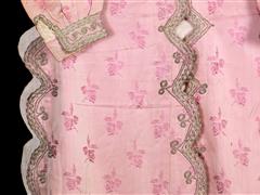 19.-20.YY. PEMBE HEREKE KUMAŞLI. KENARLAR GÜMÜŞ TEL SIRMA İŞLEMELİ. H 110 CM.