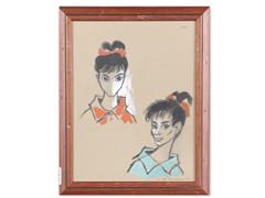 PORTRELER. KAĞIT ÜZERİ KARIŞIK TEKNİK. İMZALI. 1961 T. 32X24,5 CM.