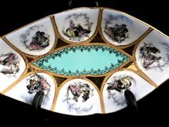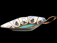 ALMAN BAVARİA İMALAT DAMGALI. 24 AYAR ALTIN KAPLAMA. OVAL FORMLU. İÇ KISIM MUHTELİF FİGÜRLERLE DEKORLU. TEK TUTAMAKLI. UZ 23 CM.