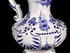 BEYAZ HAMURLU, ŞİŞKİN GÖVDELİ. GAGA AĞIZLI. KIVRIK TUTAMAKLI TÜM YÜZEY KOBALT RENKLİ ÇİÇEKLERLE VE MOTİFLERLE DEKORLU. H 33 CM.