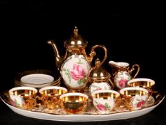 ALMAN. BAVARİA. WİNTERLİNG SCHWARZENBACH. İMALAT DAMGALI. YOĞUN ALTIN SIVAMA. DEMLİK, SÜTLÜK, ŞEKERLİK, 6 FİNCAN, 6 TABAĞI VE TEPSİ.