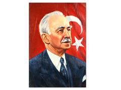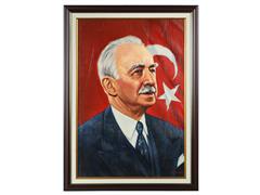 İSMET İNÖNÜ PORTRESİ. TUAL ÜZERİ YAĞLIBOYA. İMZALI. 68X46 CM.