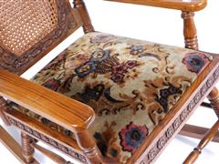 KABARTMA VE KAZIMA İŞÇİLİKLİ. OTURMA KISMI KADİFE KUMAŞ KAPLI. SIRT KISMI HAZERANLI.115X60X94 CM.