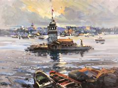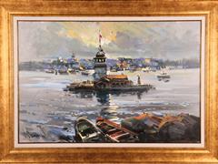 KIZ KULESİ. TUAL ÜZERİ YAĞLIBOYA. İMZALI. 60X90 CM.