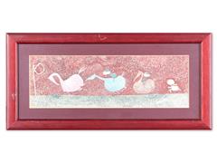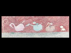 ÇOCUKLAR. KARTON ÜZERİ SULUBOYA. ANONİM.11X33 CM.
