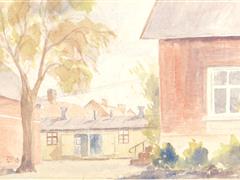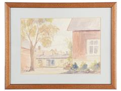 EVLER. KAĞIT ÜZERİ SULUBOYA. ARKADA İMZALI. 14X20 CM.