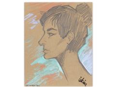 PORTRE. KARTON ÜZERİ KARIŞIK TEKNİK. İMZALI. 1961 T. 16X13 CM.