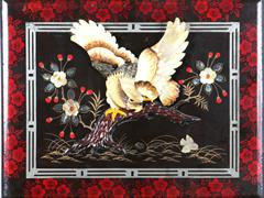 AHŞAP ÜZERİ SEDEFTEN MAMÜL KARTAL FİGÜRÜ. 27X35 CM.