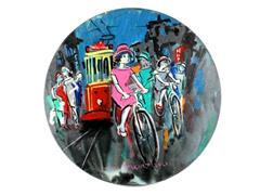 BEYOĞLUN DA FİGÜRLER. TUAL ÜZERİ YAĞLIBOYA. İMZALI. 2021 T. ÇAP 56 CM.