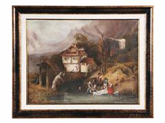 ORTA AVRUPA. ÇAMAŞIR YIKAYANLAR. TUAL ÜZERİ YAĞLIBOYA. İMZASIZ. 33X43 CM.