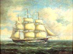 İNGİLİZ. KALYON. KARTON ÜZERİ YAĞLIBOYA. FONDENR İMZALI. 20X25 CM. ORİJİNAL ÇERÇEVELİ.