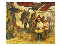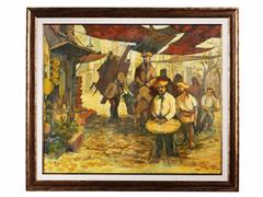 SATICILAR. TUAL ÜZERİ YAĞLIBOYA. JONES İMZALI. 47X55 CM.