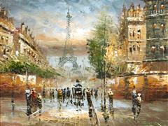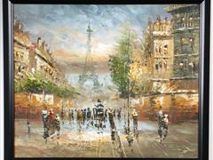 PARİS DE BİR SOKAK. TUAL ÜZERİ YAĞLIBOYA, İMZASIZ. 50X60 CM.