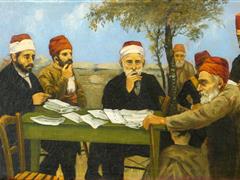 OSMANLI FİGÜRLER. TUAL ÜZERİ YAĞLIBOYA. İMZALI. 1930 T. 26,5X42,5 CM. ORİJİNAL ÇERÇEVESİNDE.