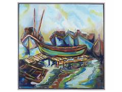 KAYIKLAR. TUAL YAĞLIBOYA. İMZASIZ. 100X100 CM.
