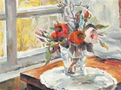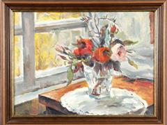 RUS EKOLU. VAZODA ÇİÇEKLER. TUAL ÜZERİ YAĞLIBOYA. ARKADA İMZALI. 44X63 CM.