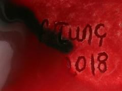 KIRMIZI HAMURLU. ÜZERİ BEYAZ ASTAR VE KIRMIZI ŞEFAF SIRLI. F.TUNÇ İMZALI. 2018 T34,5X16X12 CM.KIRMIZI HAMURLU. ÜZERİ BEYAZ ASTAR VE KIRMIZI ŞEFAF SIRLI. F.TUNÇ İMZALI. 2018 T34,5X16X12 CM.