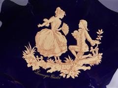FRANSIZ. LİMOGES CASTEL İMALAT DAMGALI. OVAL FORMLU. TABAK İÇİ FİGÜRLERLE , TABAK ÇEVRESİ ALTIN YALDIZ EL DEKORLU. 20-28 CM.