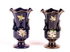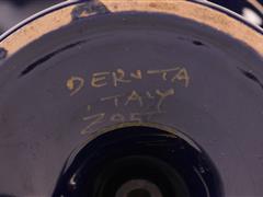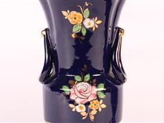 İTALYAN. DERUTA. İMALAT DAMGALI. KOBALT ZEMİN ÜZERİ, ALTIN YALDIZ VE ÇİÇEKLERLE EL DEKORLU. H 23 CM.