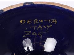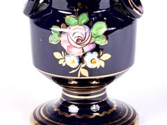 İTALYAN. DERUTA İMALAT DAMGALI. KOBALT ÜZERİ RENKLİ ÇİÇEKLER VE ALTIN YALDIZ EL DEKORLU. H 23,5 CM. ÇAP 15 CM.