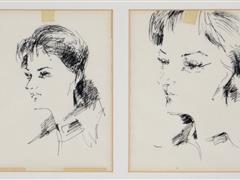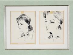 PORTRELER. KAĞIT ÜZERİ ÇİNİ MÜREKKEBİ. 15X11 CM. X 2