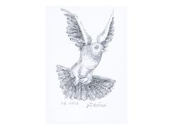 KUŞ. KARTON ÜZERİ ÇİNİ MÜREKKEBİ. İMZALI. 2008 T. 20X14 CM.