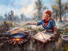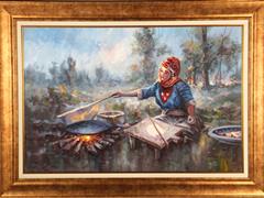 KÖYLÜ KIZI. TUAL ÜZERİ YAĞLIBOYA. İMZALI. 60X90 CM.