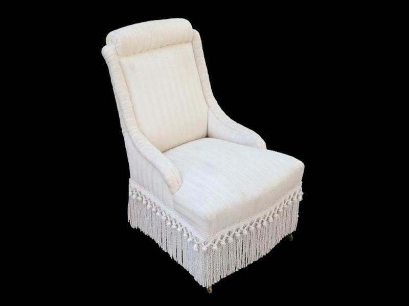 KREM KUMAŞ KAPLI. ÖN AYAKLAR TEKERLEKLİ. H 90 CM.